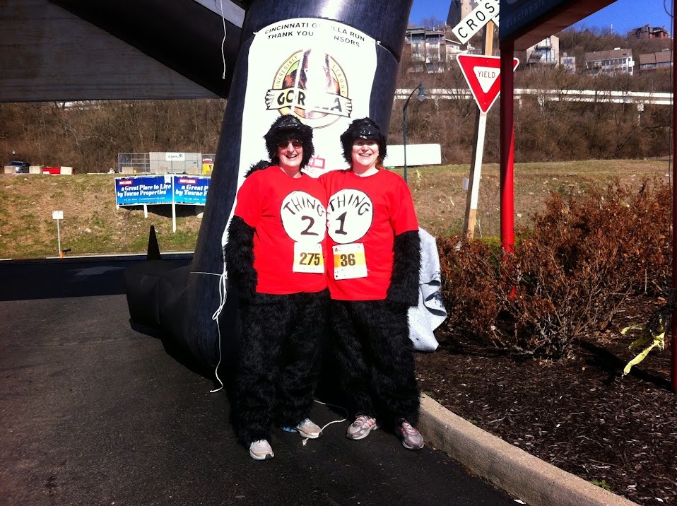 As the first stream of gorilla clad individuals raced out of the Boathouse parking lot and onto the bridge, people already on the bridge swerved out of the way. "Daddy, what's going on?" "I don't know, honey....stay close to me." They were followed by another wave of gorillas, then another.